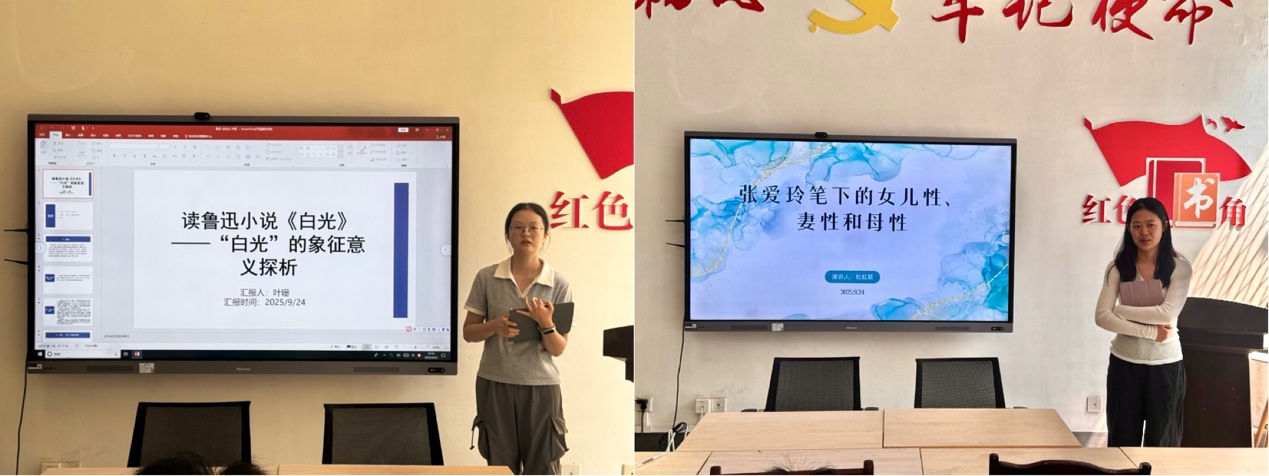杜虹颖分享了《张爱玲笔下的女儿性、妻性和母性》。叶珊分享了《读鲁迅小说<白光>——“白光”的象征意义》。唐小江分享了《再读鲁迅<明天>——论单四嫂子迷信、麻木的人物定性问题》。杨丽钰分享了《民间视角下鲁迅<药>的“母爱”主题》。
