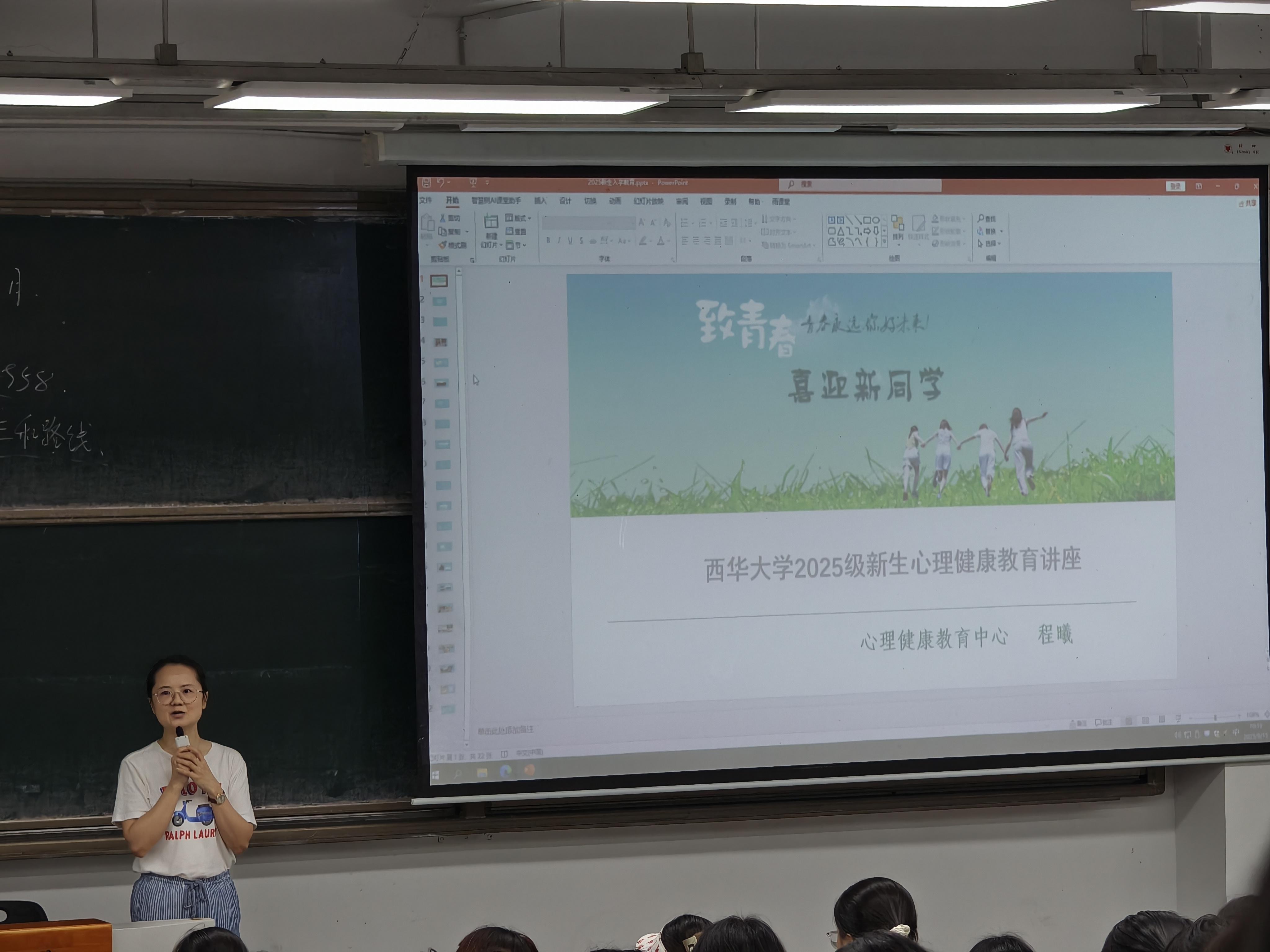 为帮助新生尽快适应大学生活,筑牢心理健康防线,2025年9月15日,文学与新闻传播学院在6B107教室成功举办了2025级新生心理健康素养提升讲座。讲座特邀校心理健康中心程曦老师主讲,学院全体本科生参与。