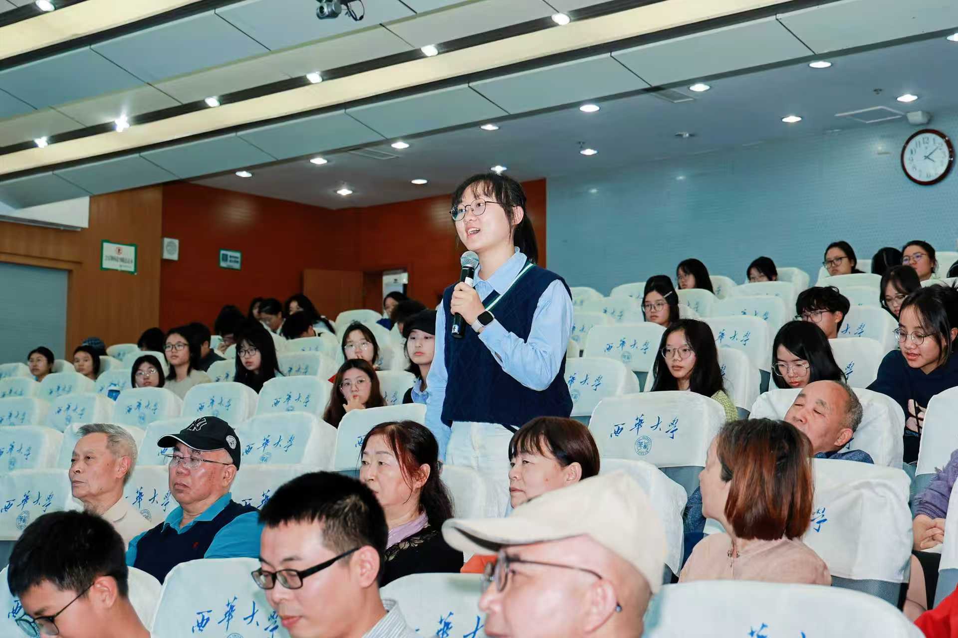 互动环节中,我校汉语言文学专业新生代表刘逦璐发言,分享此次学习感悟。其他学生踊跃提问,周树安先生逐一答疑,现场交流气氛热烈。研讨会尾声,我院中文系教授王国巍总结发言并作致谢词感谢所有嘉宾与师生的参与。最后,全体与会人员合影留念,为本次研讨会画上圆满句号。