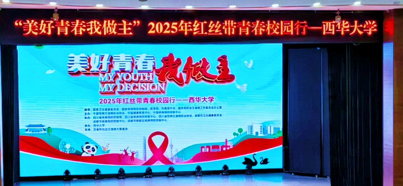 为深入落实校园防艾工作要求,切实提升青年学生的艾滋病防治意识与自我保护能力,我校于2025年10月23日下午5点在七教艺术大剧场顺利开展“美好青春我做主”红丝带青春校园行活动。中国性病艾滋病防治协会代表、高校中心感染科主任、红丝带健康大使与西华学子齐聚一堂,通过形式多样的宣传教育与互动交流,为同学们带来了一堂生动的公共生命健康课,实现了知识与精神的双重提升。