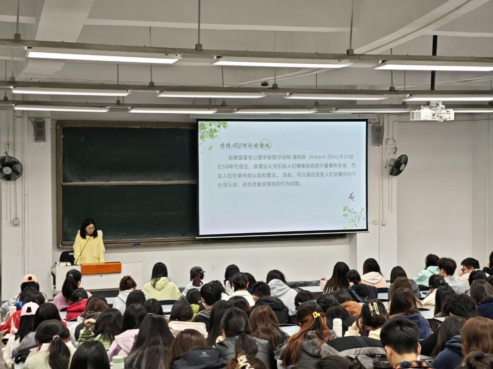 本次心理健康宣讲会以“如何拥有健康积极的心理状态”为核心,通过知识普及、问题抢答等多元形式,充分调动同学们的参与热情,让大家共同踏上寻找心理平衡的治愈之旅。“什么是心理健康”主题分享环节,不仅系统解答了同学们对心理健康的认知困惑,更细致梳理了专业心理咨询热线、校园心理辅导中心等多元求助渠道与学习途径,让大家在需要时能精准获取支持,为心灵筑牢防护屏障。“食盐效应”让同学们深刻领悟到,生活中的欲望与期待亦需张弛有度,唯有懂得节制,主动为日常增添新鲜体验,才能在平淡中品味幸福。“情绪ABC理论”打破了事件直接决定情绪的固有认知。它引导同学们看清事件本身的内在逻辑,教会大家通过调整认知视角重塑思维模式,摆脱负面情绪的束缚,主动掌控情绪走向,真正成为自身情绪的主宰者,以更从容的心态面对学习与生活中的挑战。同学们在现场全神贯注学习,面对提问积极回应,许多人都拿到了专属的惊喜小奖品,让心理健康知识的学习之旅充满趣味与收获。