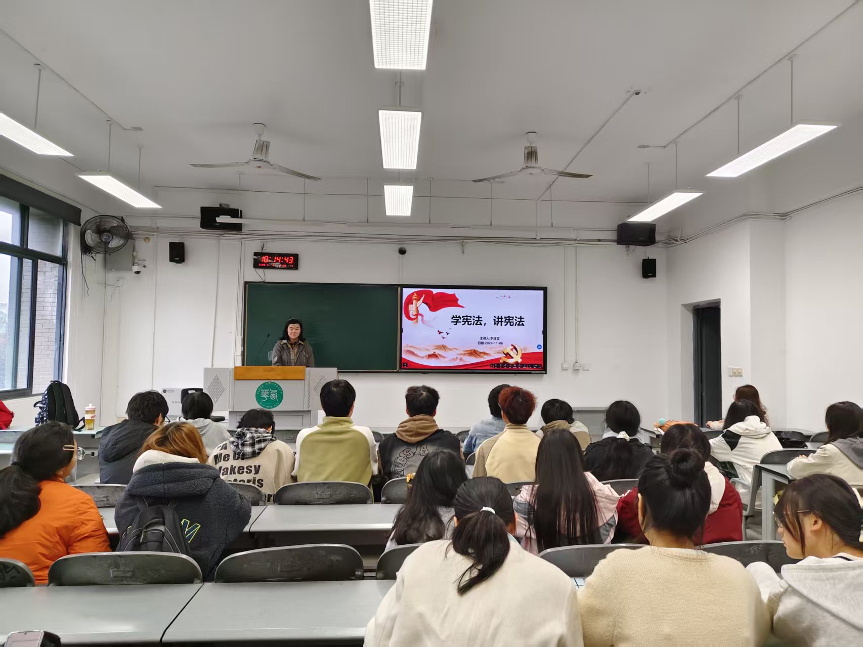 为推动宪法学习融入青少年成长过程,培养合格的社会主义建设者,2025年11月6日上午10点,汉文24-2班全体同学齐聚6c219教室,开展“学宪法,讲宪法”主题教育活动,本次活动由团支书李谨言主持。