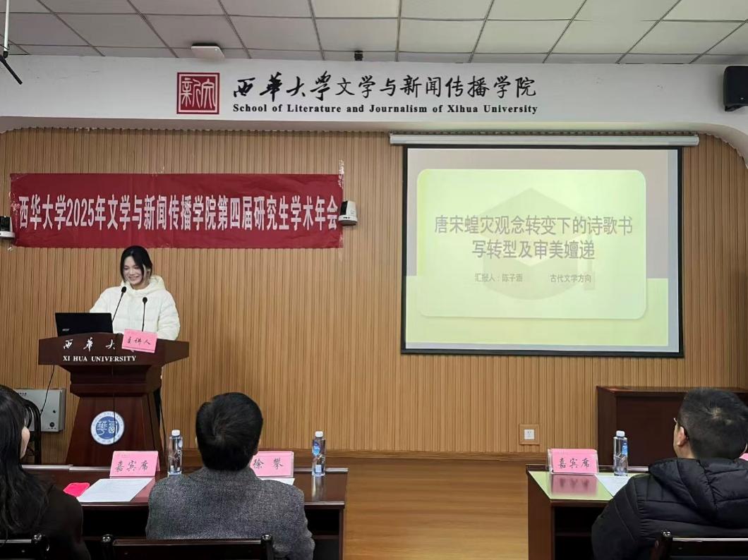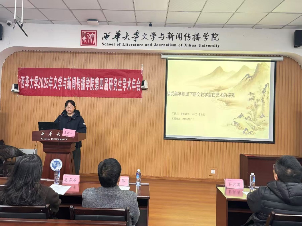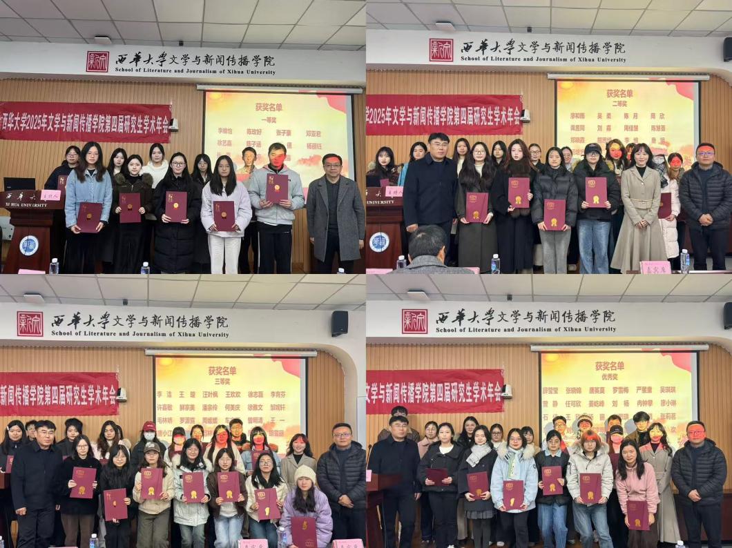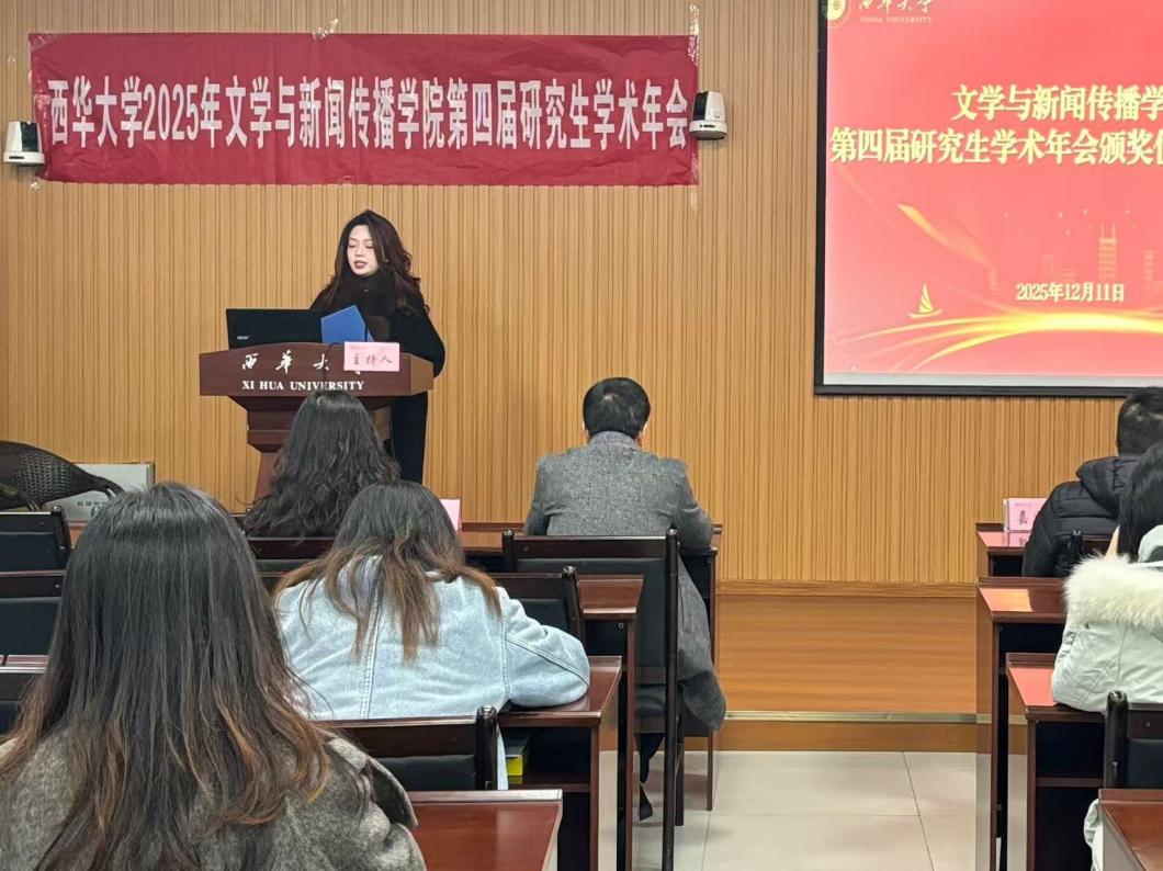 2025年12月11日,文学与新闻传播学院第四届研究生学术年会颁奖仪式暨闭幕式在第六教学楼6a-127顺利举行。学院党委副书记徐攀、王方老师、王珂老师、胡恬恬老师出席仪式,全体参会研究生共同见证本届年会的圆满收官。