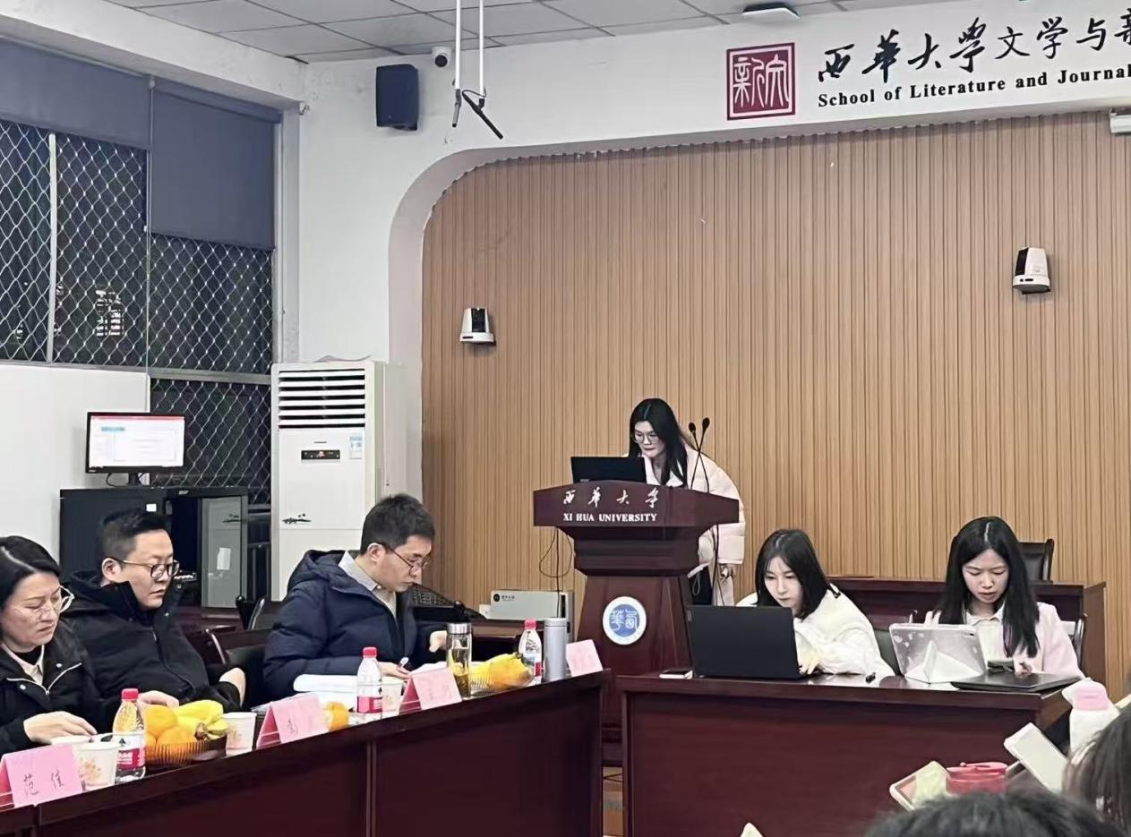 2025年12月18日下午,文学与新闻传播学院中国语言文学硕士点古典文献学方向2023级研究生学位论文预答辩于6A-127教室举行。本次预答辩特邀成都杜甫草堂博物馆彭燕研究员担任答辩主席,我院王珂副教授、王燕飞副教授、李钊副教授及杨帆讲师担任答辩委员。