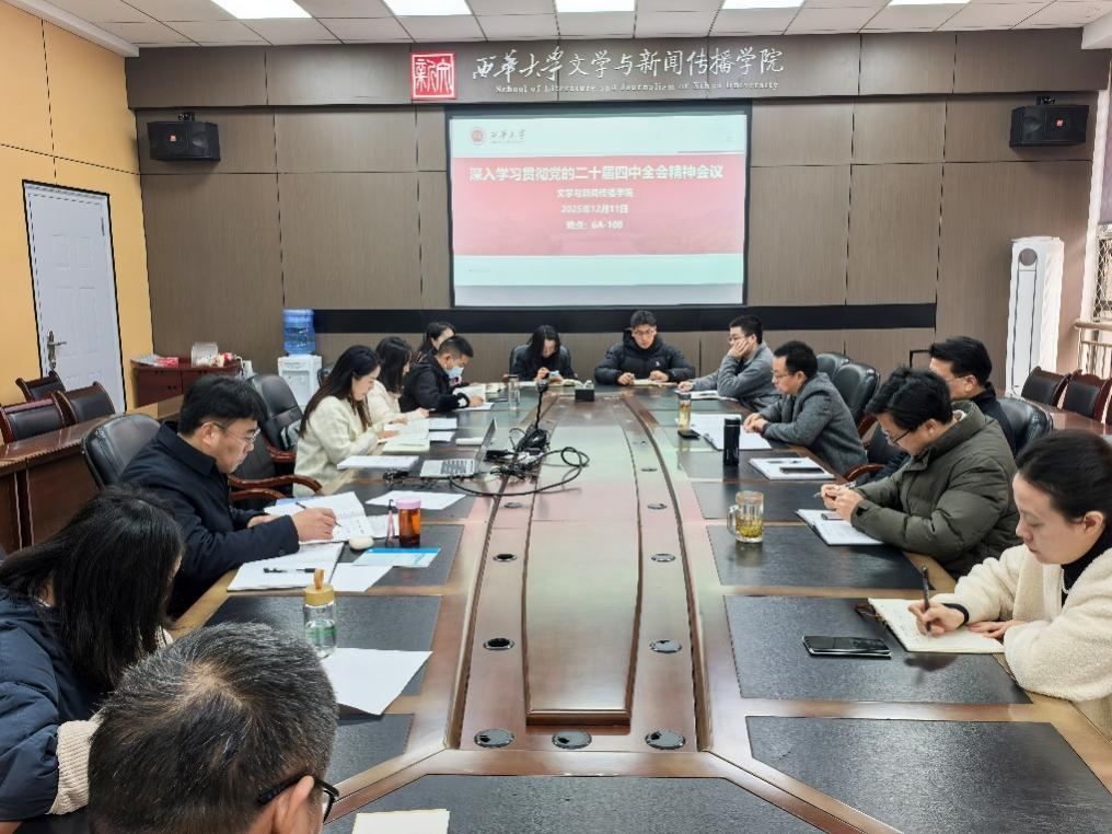 此外,会议还传达学习了《四川省第十二届委员会第八次全体会议公报》、《中共四川省委关于制定四川省国民经济和社会发展第十五个五年规划的建议》等文件内容,并通报了学校人文社科处就二十届四中全会相关要求制定的发展方案。副院长王学东、组织员张利等分别结合分管领域,围绕学习主题进行了相关工作汇报。