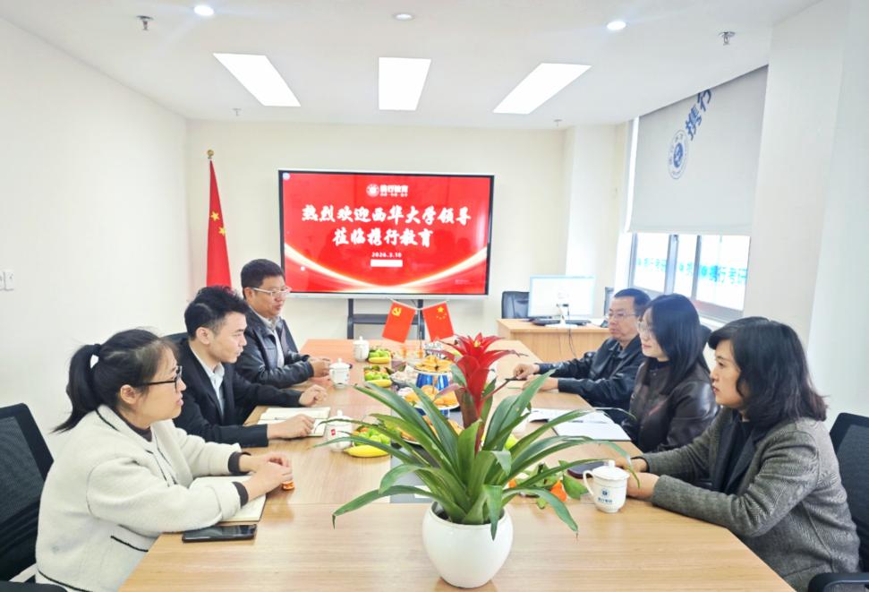 走访期间,团队与企业负责人开展深度座谈交流。在四川携行教育科技有限公司,徐攀详细介绍了学院专业设置、人才培养模式及学生考研升学总体情况,企业方就培训体系、教学特色与备考指导优势作说明,双方围绕学生深造规划、考研指导服务、长效合作机制建设等议题深入探讨,就助力学生高质量升学与就业达成初步共识。