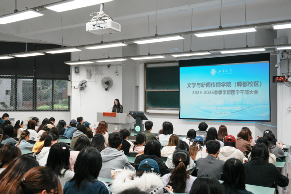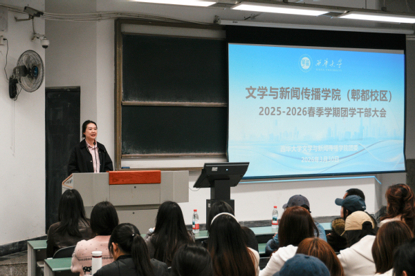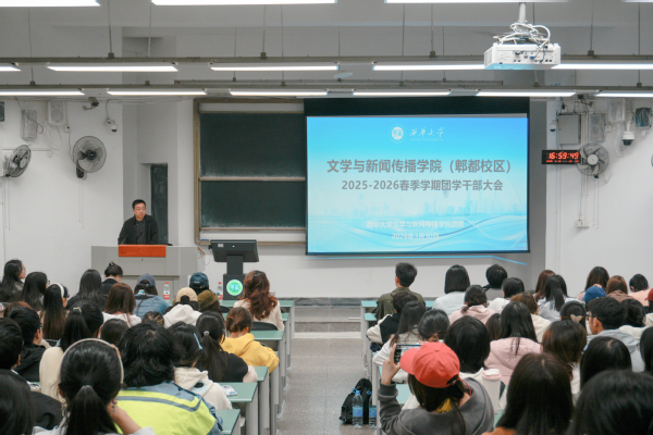 会议伊始,全体与会人员肃立齐唱中国共产主义青年团团歌,展现出文学与新闻传播学院团学组织朝气蓬勃、团结奋进的青春风采。